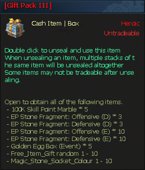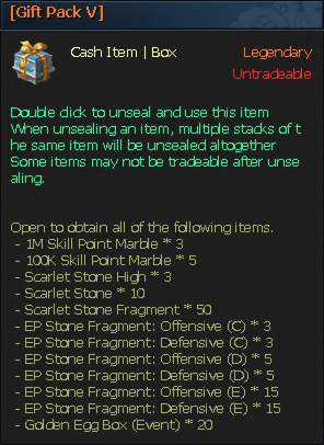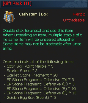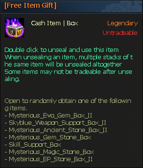 WARNING: Reward box contents may change with next patches. If you keep unopened boxes when the next patch arrives, their contents may differ. Please open all boxes before the patch window. No restorations or reimbursements will be provided afterward.
